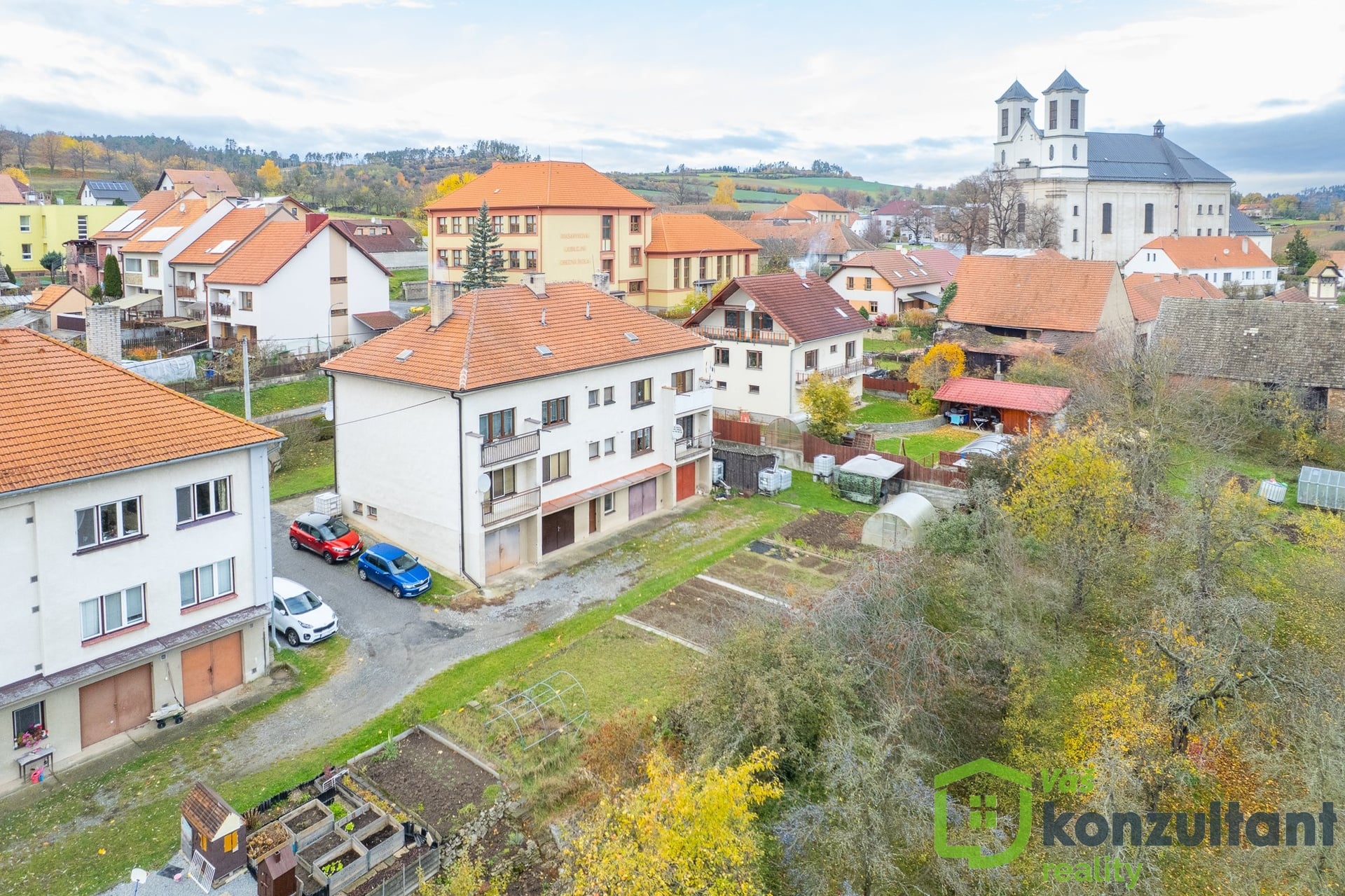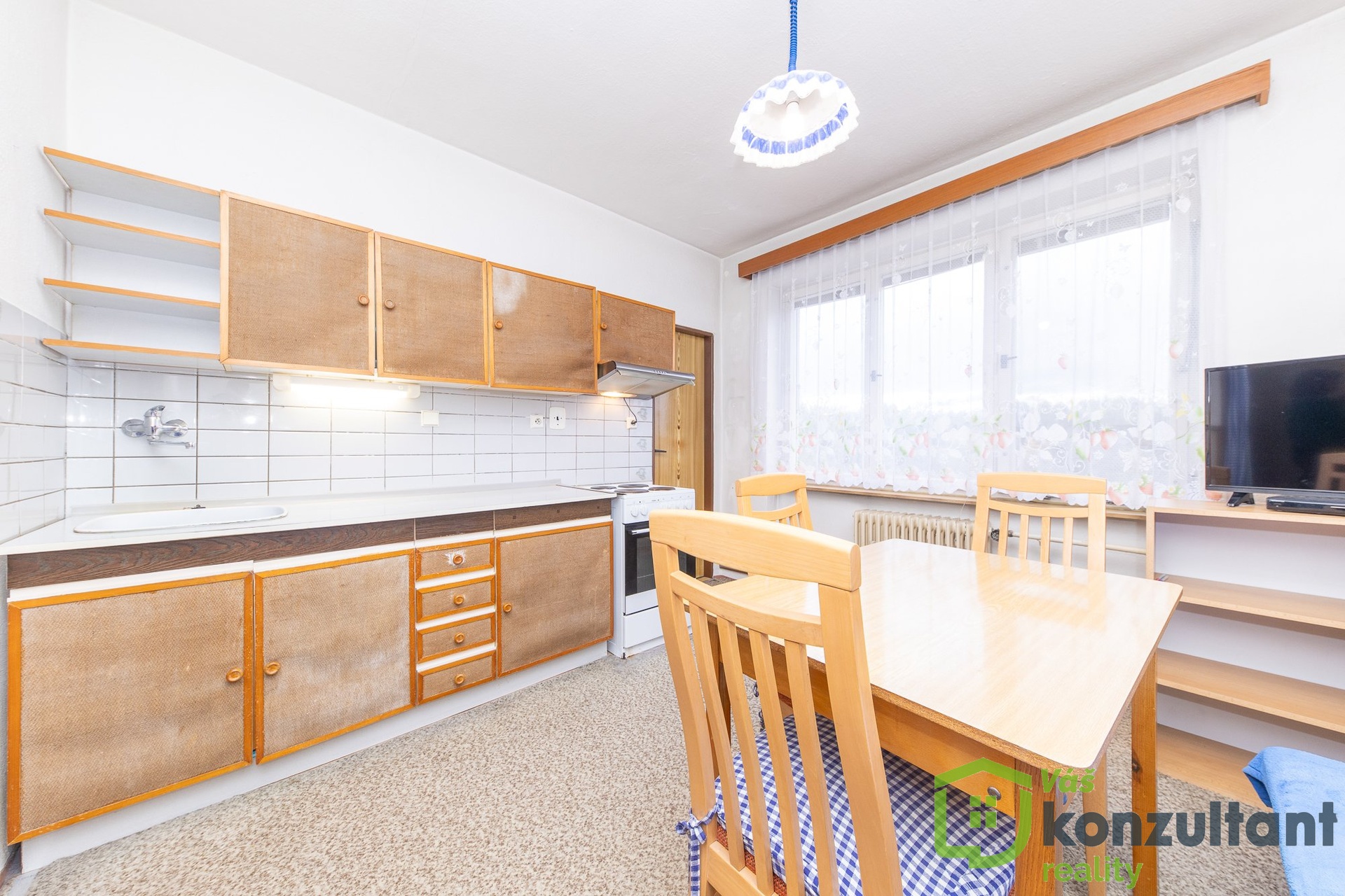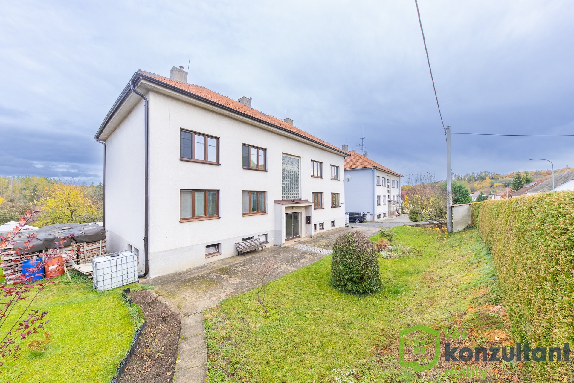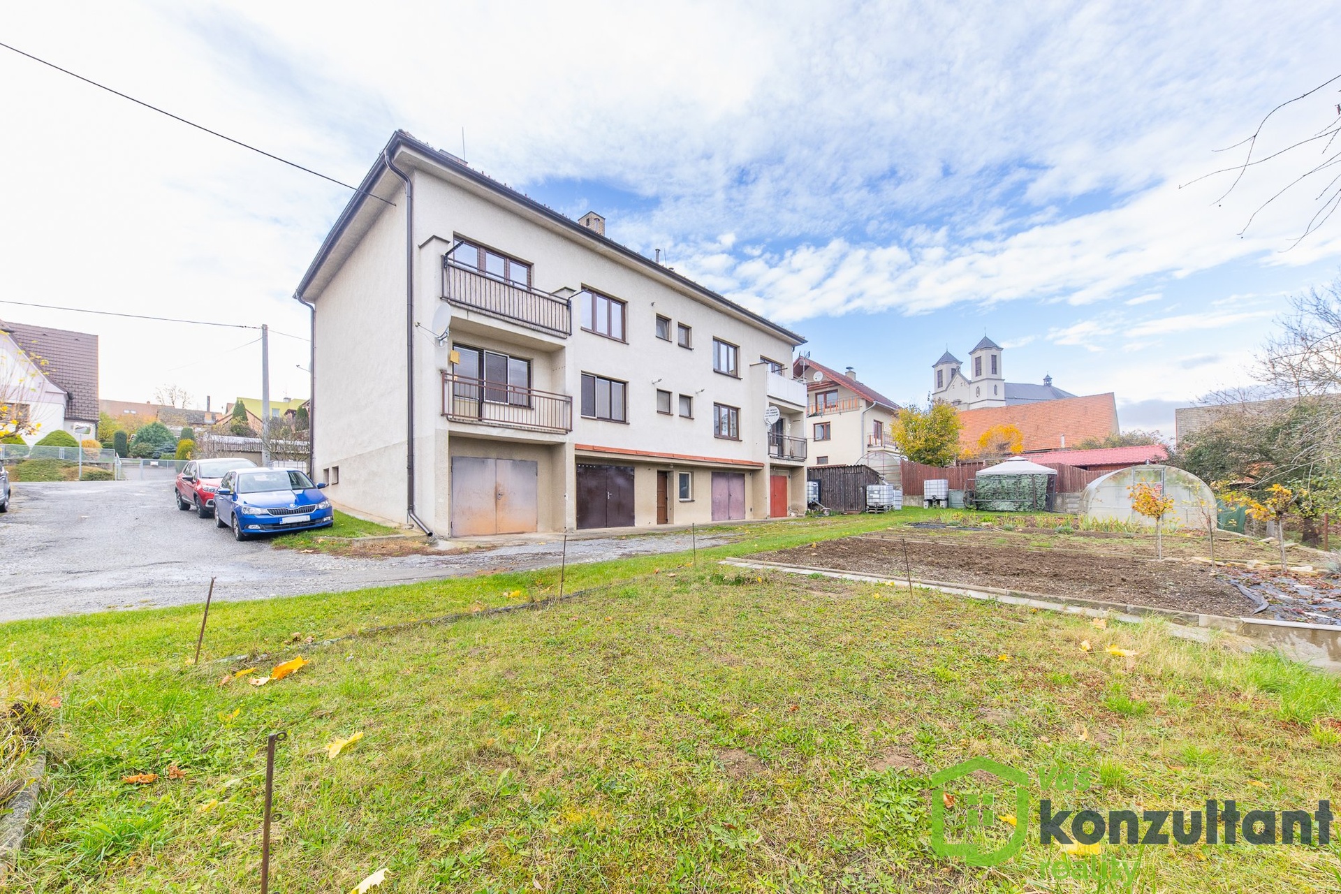 Prodej prostorného bytu 3+1 (84 m²) se zahrádkou, garáží, sklepy a možností půdy – skvělá INVESTICE! | Přibyslavice u Třebíče.