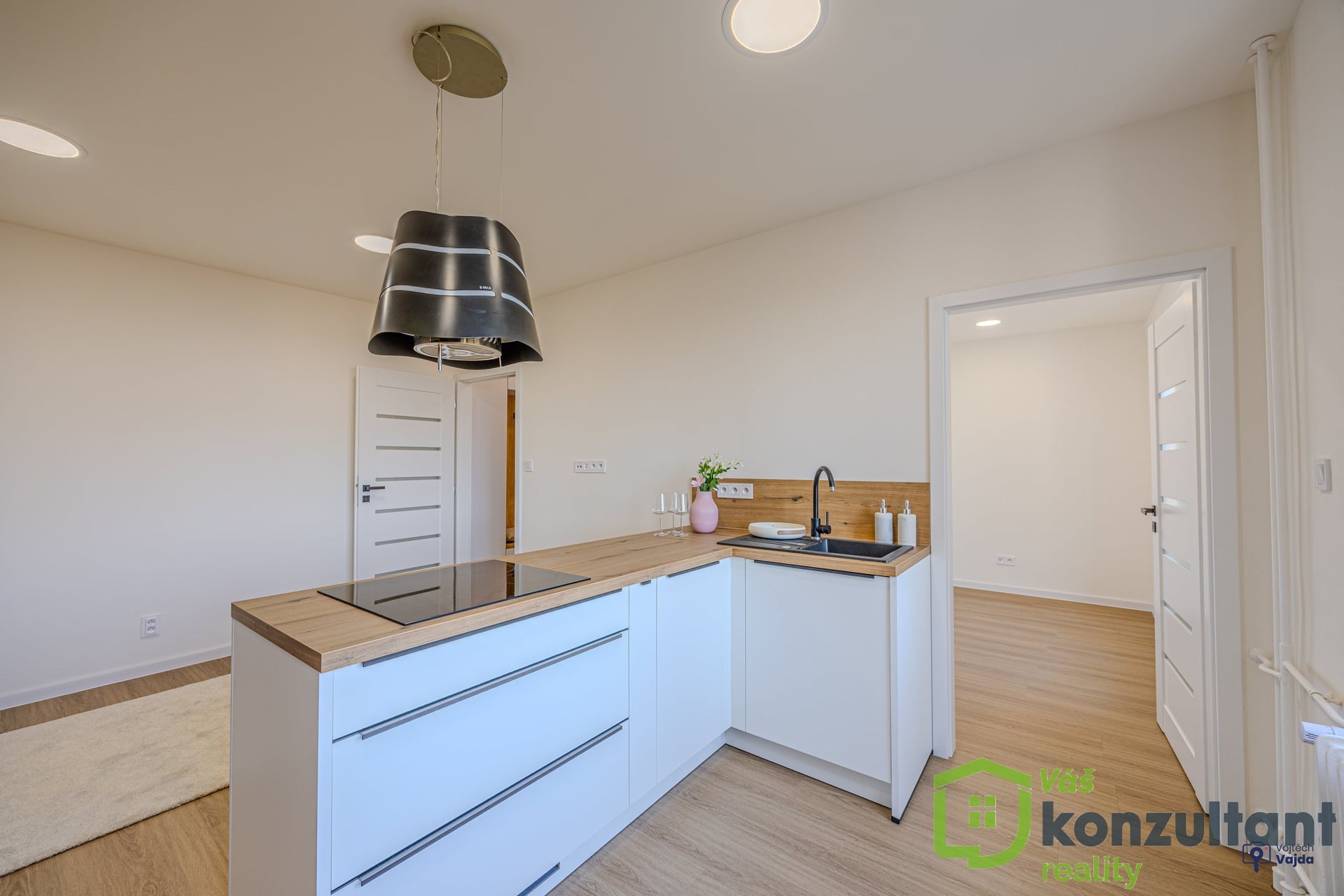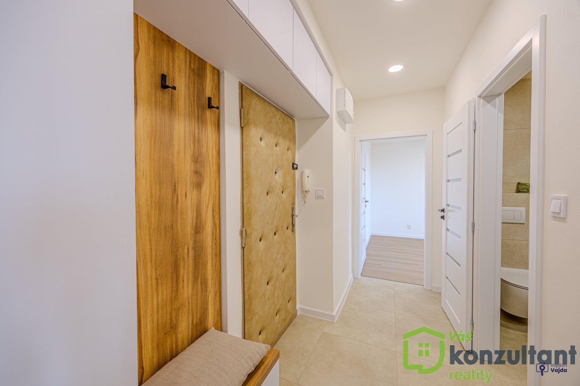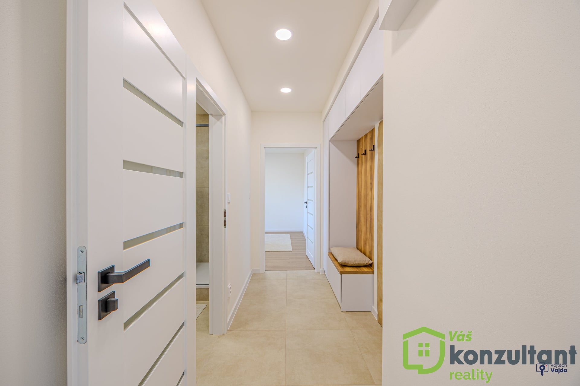 V celém bytě jsou podlahy s provedenou nivelací a pokládkou z lepeného vinylu. V předsíni, v koupelně a na WC je velkoformátová dlažba a obklady. Jádro je zděné, rozvody vody a odpadů v plastu, elektřina v mědi, SDK podhledy, nové sádrové omítky. Nové interiérové dveře s obložkami. Kuchyně je vyrobena na míru s vestavěnými spotřebiči a indukční varnou deskou, vše značky Beko. V koupelně je sprchový kout s nikou s led osvětlením a skříň, vyrobená na míru pro umístění pračky. V předsíni na míru vyrobená vestavěná skříň s botníkem. Ve všech pokojích je k zásuvkám vyvedeno internetové připojení. Vypínače k osvětlení se stmívači v dětském pokoji a v ložnici umožňují měnit intenzitu osvětlení dle potřeby.