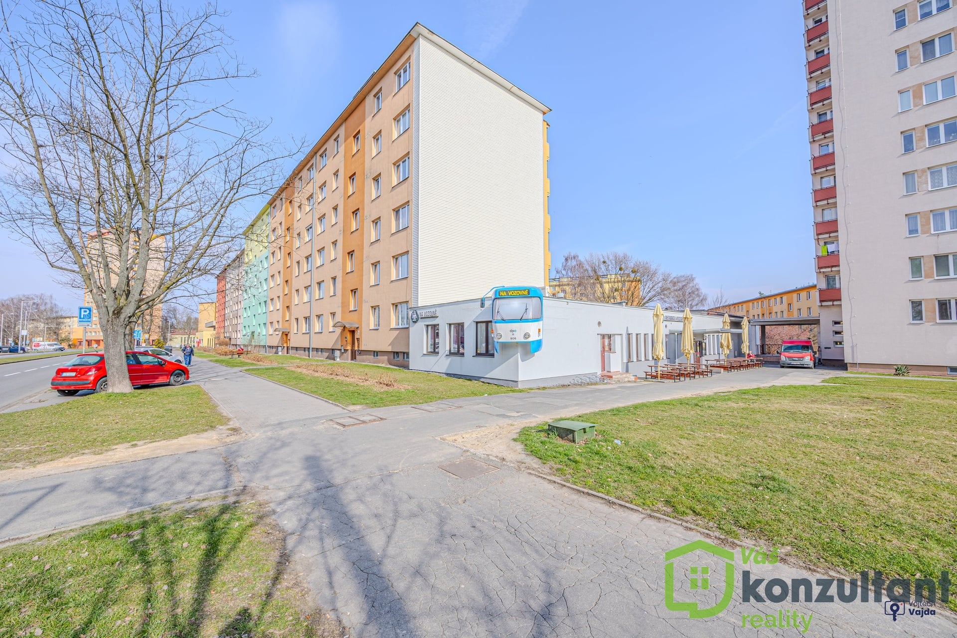 Byt se nachází v klidnější části města, v okolí se nachází veškerá občanská vybavenost, obchody, školky, školy, restaurace, fitcentrum, kino, lékárna, MHD i meziměstská autobusová doprava.