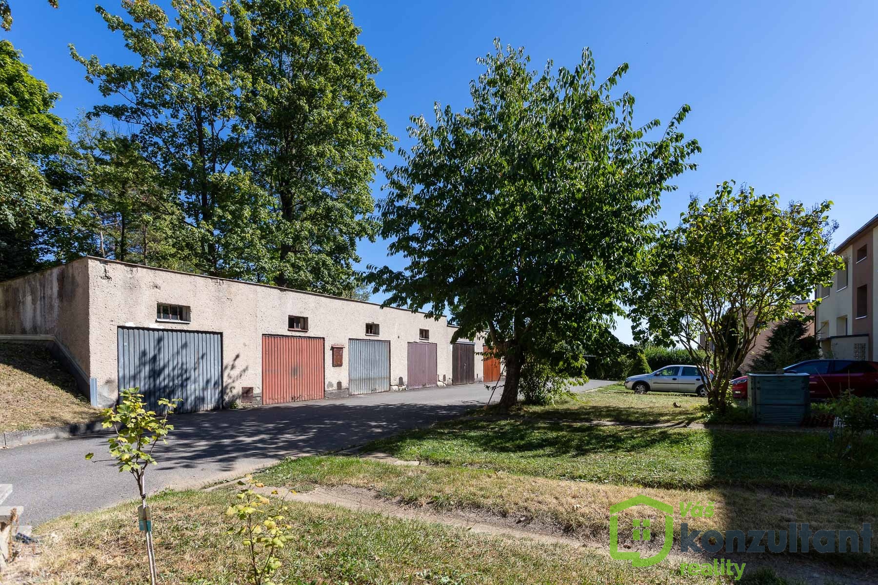 K bytu patří také balkón (3,15 m²), sklep (3,06 m²) a samostatná garáž (23 m²) přímo před domem.