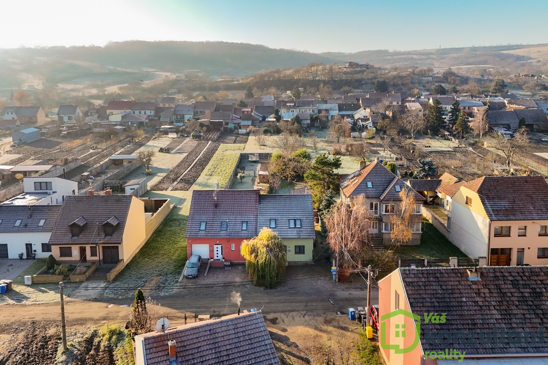 Tato nemovitost se nachází v klidné části obce Blučina, která patří mezi nejvyhledávanější lokality v okolí Brna. Blučina nabízí příjemné a bezpečné prostředí s kompletní občanskou vybaveností – od školy a školky přes obchody až po zdravotnické služby. K dispozici je také sportovní hala, krytý bazén a několik dětských hřišť. Díky výbornému napojení na dálnici D2 je cesta do Brna rychlá a pohodlná, přibližně 15 minut. Obec je oblíbená především pro svůj vesnický charakter, blízkost přírody a kvalitní zázemí pro rodinný život.